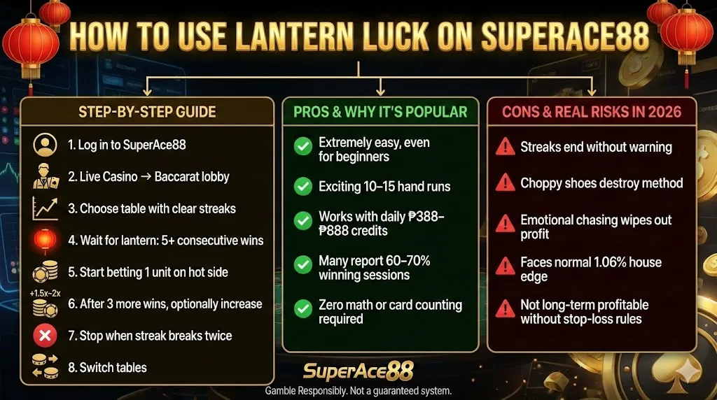 “Lantern Luck” (sometimes called “Deng Long Yun” or simply “Follow the Light” in Filipino chat groups) is the hottest momentum-based baccarat tactic sweeping the Philippines in 2026. Inspired by the Asian tradition of lanterns guiding people to fortune, the idea is simple: